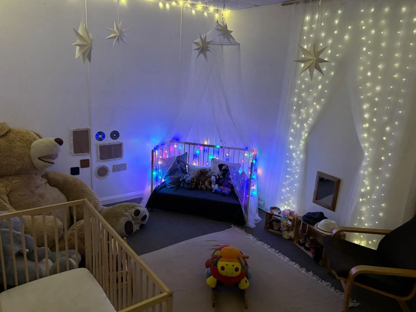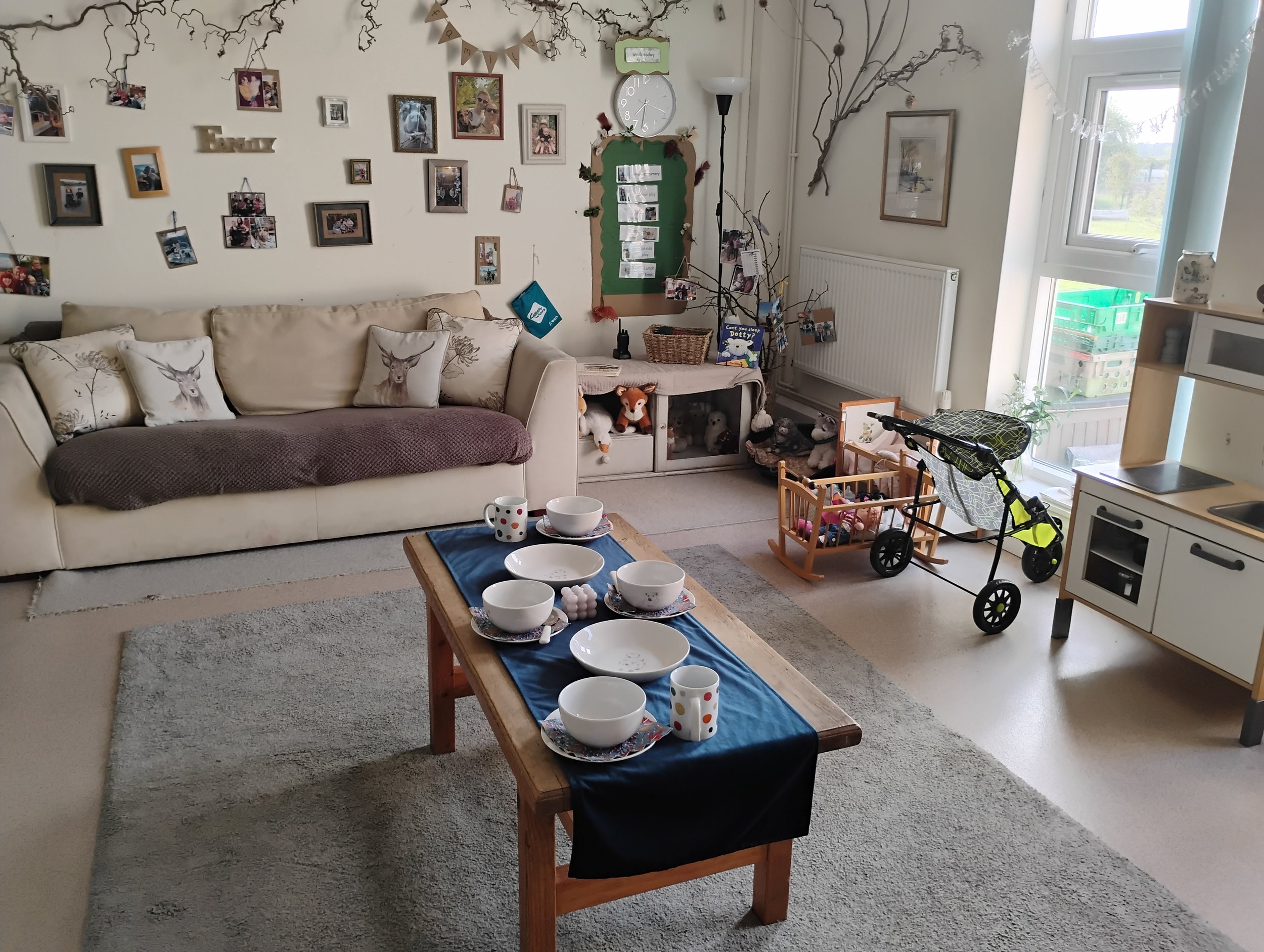 In addition to our garden and forest school spaces, we have three individually designed and decorated rooms. We have created a homely atmosphere in our spacious rooms. We deliberately ensure all our rooms are well below capacity so that all children have space to learn and develop in their own way.